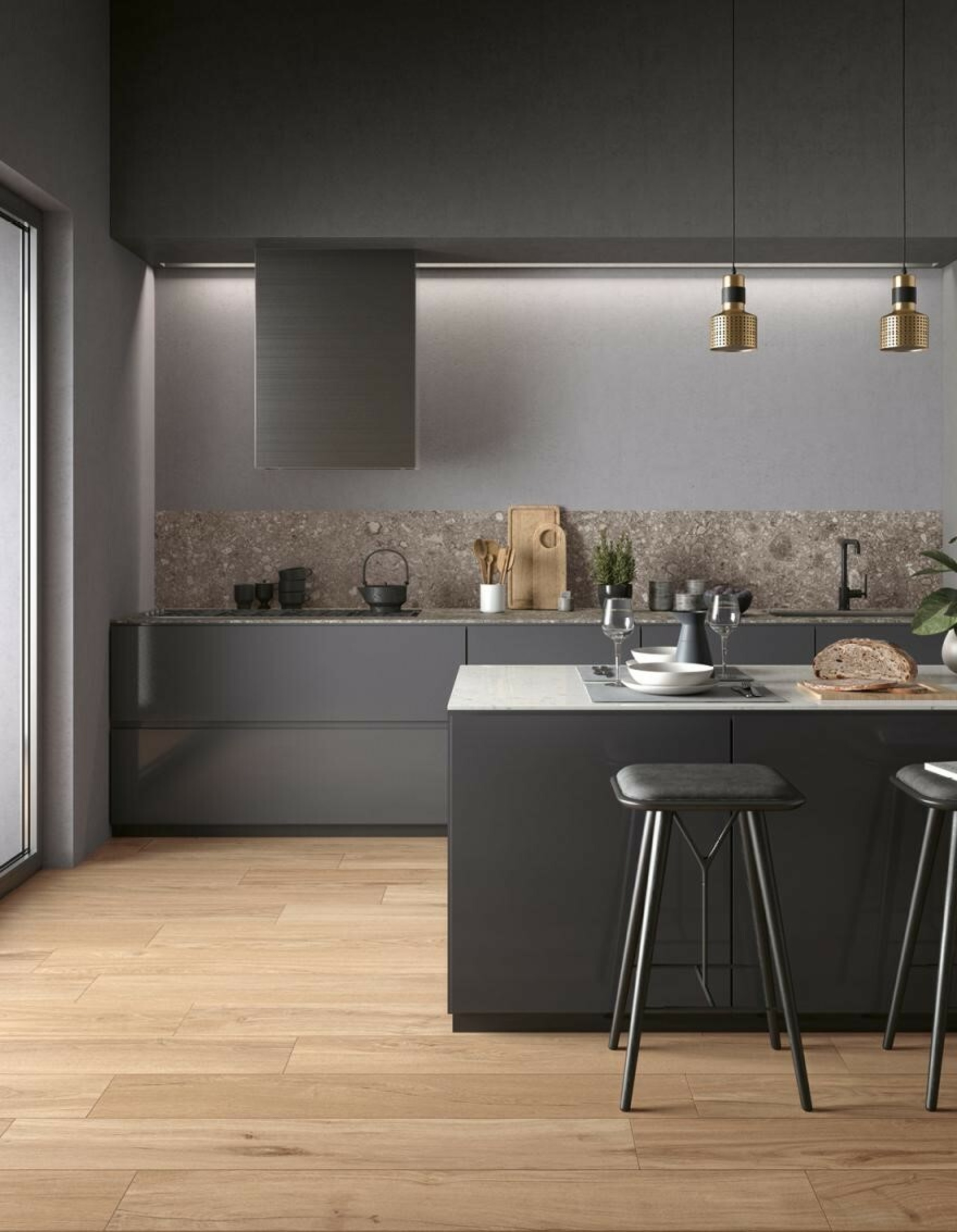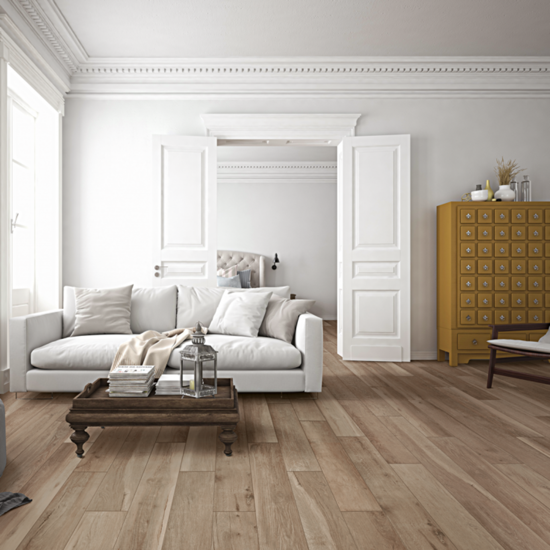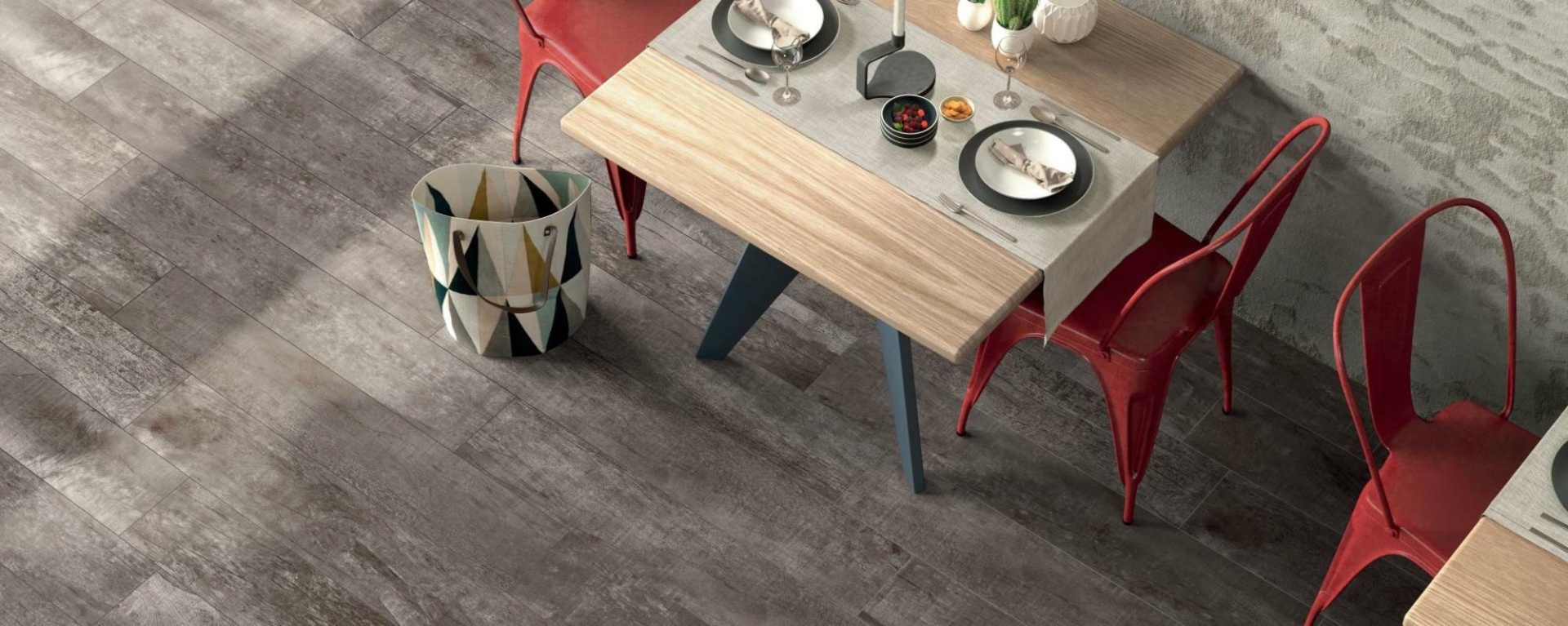 Geniet van de gezellige/warme parketuitstraling met de onderhoudsvriendelijkheid van keramische tegels.